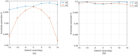 Calibration results of the polarizing section using the proposed method when (a) or (b) deviates from the default value.