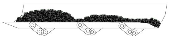 The non-uniform bulk material distribution affects the dynamic performance of the system. Belt tear and breaking accidents can occur when the belt encounters unsteady working conditions, such as starting and braking, since the dynamic characteristics of the belt under a non-uniform bulk material distribution are more complex. Moreover, the type of material, the conveying process requirements, the equipment layout and other factors often cause non-uniform bulk material distribution in actual operation, as shown in Figure 3, it makes the dynamic characteristics of the belt even more complex.