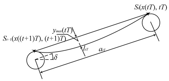 As shown in Figure 7, we assume atT is the idler spacing at the displacement x(tT) at time tT, (m), δ is the conveying inclination of the belt, (°), ltT is the arc length at the displacement x, (m), qB is the mass of the conveyor belt per unit length (kg/m), and St(x(tT), tT) is the belt tension of tth infinitesimal element at the displacement x(tT) at time tT.