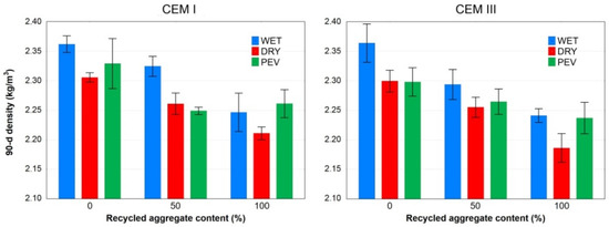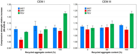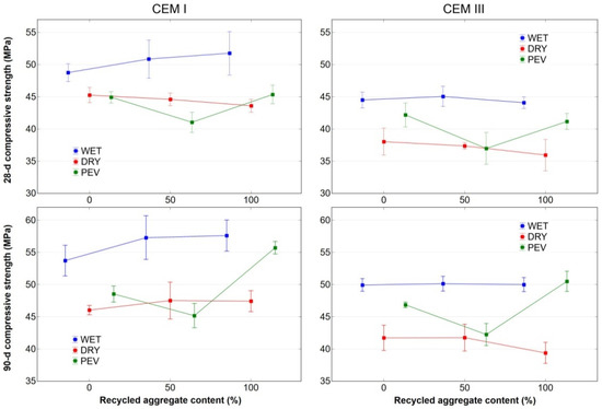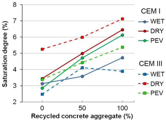 - In terms of durability, the authors of this paper propose the eco-durability index S-CO2, especially for composites with recycled aggregate. In the conducted research, more favorable values of this index were obtained for concrete with blast-furnace slag cement, but under the condition of proper curing.