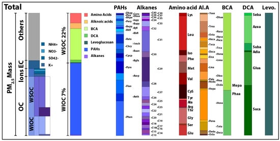 - Park, S.S.; Bae, M.-S.; Schauer, J.J.; Kim, Y.J.; Yong Cho, S.; Jai Kim, S. Molecular composition of PM2.5 organic aerosol measured at an urban site of Korea during the ACE-Asia campaign. Atmos. Environ. 2006, 40, 4182–4198. [Google Scholar] [CrossRef]