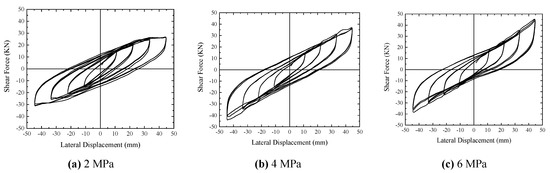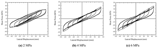 Hysteretic curves of R1: (a) 2 MPa; (b) 4 MPa; (c) 6 MPa.