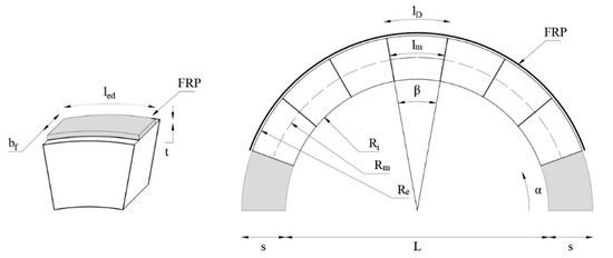 - Definition of the inputs. In particular, the geometry of the arched element, the mechanical characteristics of the substrate, and the mechanical and geometric characteristics of the FRP material.