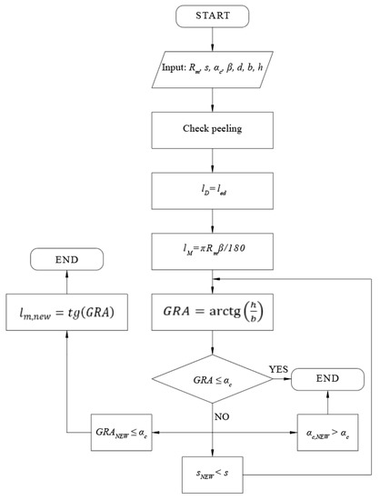 - Verification of the angles. If GRA≤α, the verification is satisfied, and then the input geometry is valid for the purposes of the construction technique. If not, one of the following solutions should be chosen: