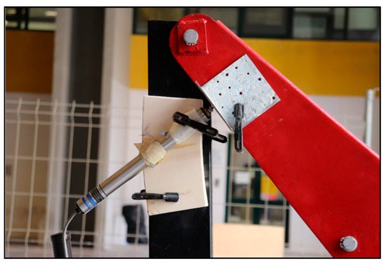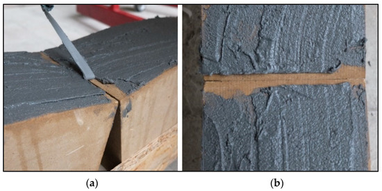 First, the extrados of the blocks was cleaned with compressed air to eliminate surface dust, and then it was prepared with a film of epoxy primer. Afterward, the blocks were joined by gluing a carbon sheet (150 × 3600 mm2) on the extrados through an epoxy-based matrix. The main properties of the Carbon-FRP (CFRP) are reported in Table 1, as tested according to ASTM D7565/D7565M-10 [28]. The hinge in between two side-by-side blocks was obtained by using the butyl tape (see Figure 1 and Figure 8) for a length of 10 mm and a width of 150 mm (arch width), avoiding the bond between the FRP and the substrate.