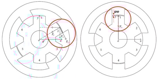 Switched reluctance motor (SRM) residual vertical force diagram, adapted from Reference [].