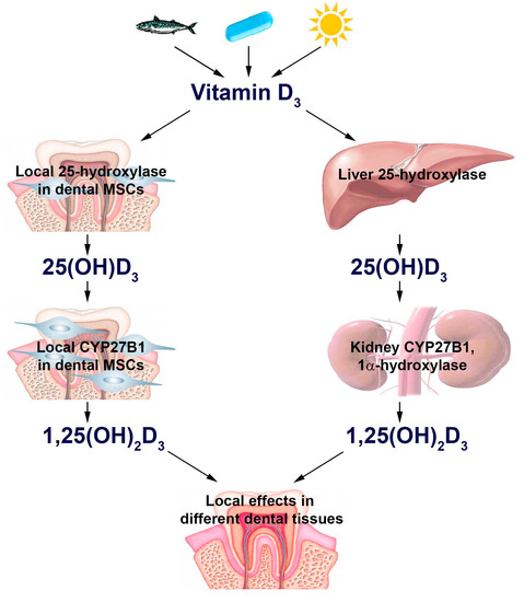 - Liu, K.; Meng, H.; Hou, J. Activity of 25-hydroxylase in human gingival fibroblasts and periodontal ligament cells. PLoS ONE 2012, 7, e52053. [Google Scholar] [CrossRef]