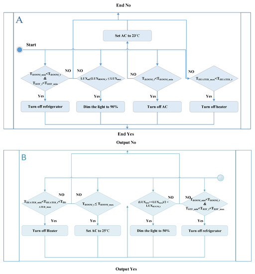 The algorithm used the preset user comfort ranges for each appliance, or the immediate previous measurements, as detailed in Equation (1).