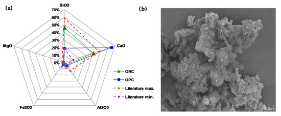 - Kwon, E.; Ahn, J.; Cho, B.; Park, D. A study on development of recycled cement made from waste cementitious powder. Constr. Build. Mater. 2015, 83, 174–180. [Google Scholar] [CrossRef]