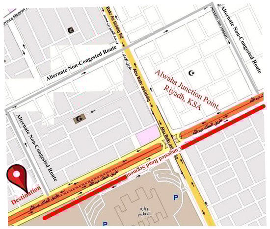 Alwaha (Riyadh, KSA) junction point for IoV-based congestion detection and avoidance.