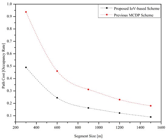 Effect of various segment sizes on IoV-based CDA path cost (previous MCDP scheme [20]).