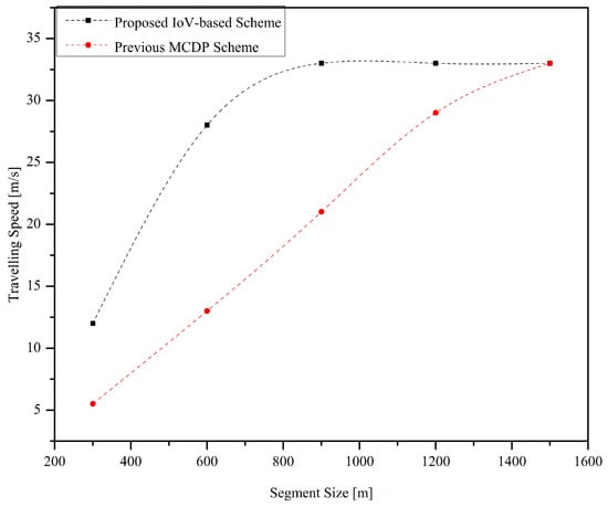 Effect of various segment sizes on IoV-based CDA travelling speed (previous MCDP scheme [20]).