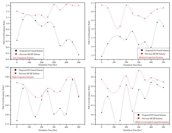 Effect of various congestion levels on IoV-based CDA and MCDP path cost (previous MCDP scheme [20]).