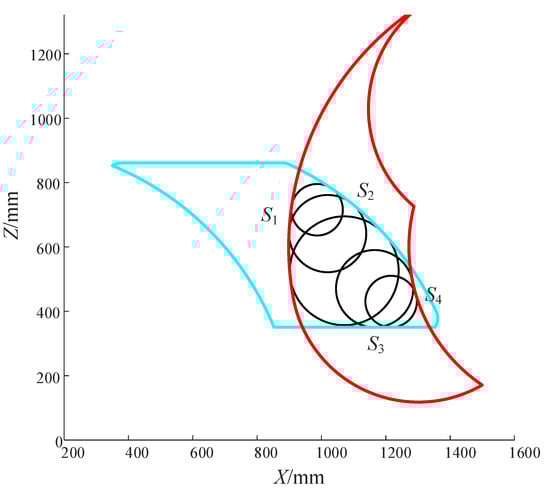 The circle training trajectory is applied in the sagittal multiple joint training, which is calculated by the first method. The main approach is calculating the typical incircles of the workspace boundaries, and other circles could be obtained by modifying the typical circles. The position of the incircle center could be obtained from Equation (14), and the circle trajectory is expressed as Equation (15).