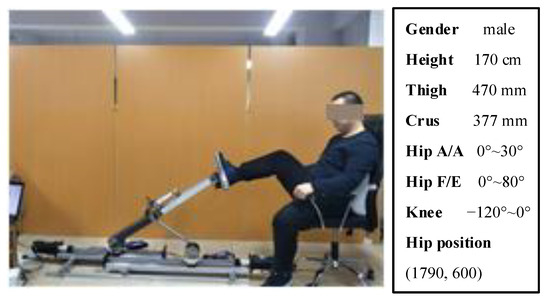 In this section, trajectory tracking experiments were conducted to verify the trajectory planning and the human joint analysis method. A healthy subject was selected to associate the experiment, and the informed consent was confirmed and signed by the subject before the experiment. The prototype of this robot and relative parameters are shown in Figure 13.
