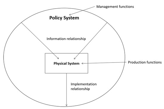 - nested complexity—resulting by the relationship of information implementation that exists between the policy and the physical systems (Figure 1). Policy system is the one responsible for the actions of the physical system as it informs the physical system about changes that need to happen. The physical system on the other hand, responds by implementing the commands coming from the policy system, for example, the policy system informs the physical system that a capacity paradigm of mobility is going to be followed; the physical system responds by constructing more roads for the territorial displacement of auto-mobiles.