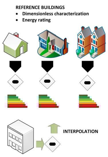 It is worth noting that this software approaches its simulations to the building objective of study by means of global dimensionless variables and a statistical adjustment [] respect to buildings simulated previously with the old Calener Vyp, as it is represented in Figure 1. This fact supposes that the CE3X software does not analyze the dynamics of the target building but adjusts the dynamics of a simulated-type building in the provincial capitals with reference software.