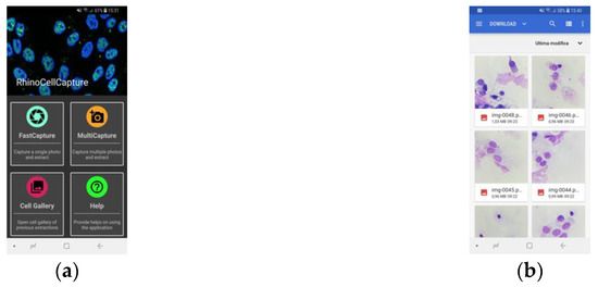 GalleryActivity and FullScreenActivity deal with the visualization of the cells extracted from the algorithm. In particular, the first deals with the loading of the images extracted, accessing the memory of the device, and their visualization in a gallery, in which all the previews of the extracted cells that will be selectable and shareable will be displayed. In particular, the shareImages and deleteImage methods are used, respectively, to share the selected cells and to delete them from the device memory. The reloadAdapter method is used to update the gallery screen after sharing or deleting images, simply reloading the images from the memory. FullScreenActivity is the activity that is invoked by GalleryActivity every time you press on a preview. This activity allows the full screen display of the selected cell.