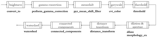 After marker identification (Euclidean Distance Transform and local maxima detection), the Watershed algorithm is applied, as shown in Figure 8. To improve the performance of the Watershed algorithm, the bandwidth h was defined by studying the range of variation of the cell size by means of a micrometer, a high precision gauge with a typical sensitivity of a hundredth of a millimeter.