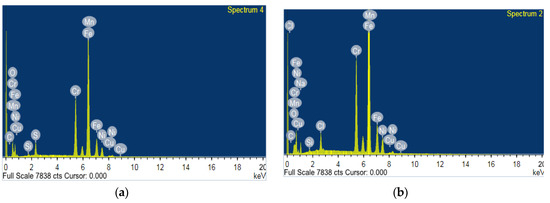 Energy dispersive X-ray (EDS) analysis after potentiodynamic polarization of (a) conventional rebar and (b) DP rebar.