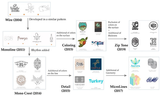 - Ha, H.; Bae, S.; Han, H.; Lee, K. Logo Trend Visualization: Logo Design Shape Element Trend and Pattern Analysis. In Proceedings of the 8th International Symposium on Visual Information Communication and Interaction, Tokyo, Japan, 24–26 August 2015; pp. 158–159. [Google Scholar]