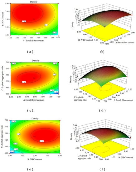 In the Equation, A is the amount of BF; B is the amount of NTC; C is the asphalt–aggregate ratio.