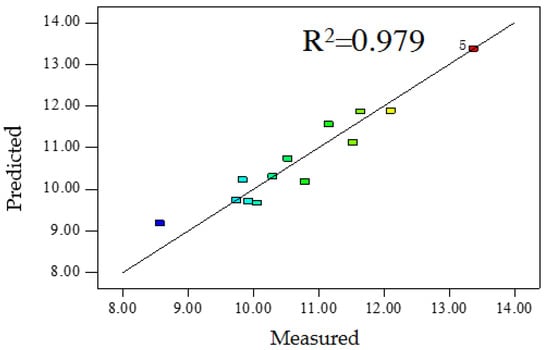 (2) Through analysis of variance and testing of the fitted model, it is concluded that the fitted model has a higher significance level. Comparing the predicted value with the measured value, it is found that the difference between them is small. This shows that the model has high fitting accuracy and prediction ability, and can accurately reflect the relationship between each input index and output index;