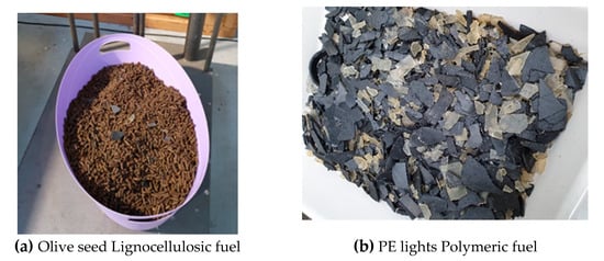 The results from LHV of olive seed is similar to another studies [67,68] and also typical of dry pellet wood biomass [69]. The LHV obtained in the case of the polymeric fuel, 41.8 MJ/kg, was double the value of olive seed, having results similar to those reported by other studies [70]; in fact, the amount of carbon present in polymeric fuel is responsible for the high energy value [71]. This observation leads us to think about the interesting use of these materials as fuel with high energy power. On the other hand, it is interesting to note that plastic waste has a high energy, which can affect equipment that is not well designed for it. Due to its high LHV, to avoid damage to the equipment and following the manufacturer’s instructions, the co-gasification process is used for waste with a high calorific value.