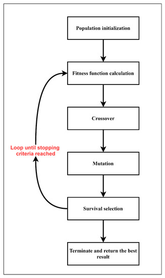 - Survival selection: The survival policy determines which individuals should be maintained in the next generation. However, this is a crucial step as it must ensure that the fitter individuals are not kicked out of the population while maintaining diversity in the same population. In this work, a fitness-based selection is used, in which the children tend to replace the least fit individuals in the population [49].