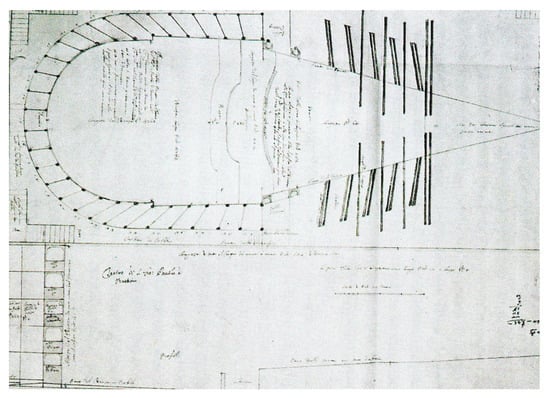 The word Opera in Latin is the plural of opus, which means “act, performance”. Thus, opera means the simultaneous act of a performer—including their voice and gestures—and music. Florence and its 16th-Century cultural influences are commonly accepted as the birthplace of Opera. This kind of performance acquired a semi-public dimension, such as the Teatro Mediceo in Florence (1586). After Florence, some North-Italian courts hosted opera composers and independent architectures were opened to the ruler and the court [1]. In the Venetian area, the Teatro Olimpico, Vicenza (1585) [2] were designed by A. Palladio (1508–1580); in the courts of Milan, the Teatro all’antica, Sabbioneta (1590) by V. Scamozzi (1548–1616) [3]; in Parma, the Teatro Farnese (1618, damaged during WWII and rebuilt) [4,5] by G. B. Aleotti (1546–1636); by the same architect, in Ferrara, the Teatro degli Intrepidi (1604, burned in 1679) [6]. In these early spaces designed for melodrama, one of the most significant aspects is the structural and typological background, deriving from the form of the Roman architecture, including the Roman theatre [7]. This latter was called ’Ancient theatre’ until the 18th Century [8,9], in contrast with the ‘new theatre’ for opera.