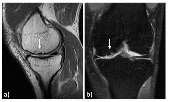 - Tetta, C.; Busacca, M.; Moio, A.; Rinaldi, R.; Delcogliano, M.; Kon, E.; Filardo, G.; Marcacci, M.; Albisinni, U. Knee osteochondral autologous transplantation: Long-term MR findings and clinical correlations. Eur. J. Radiol. 2010, 76, 117–123. [Google Scholar] [CrossRef]