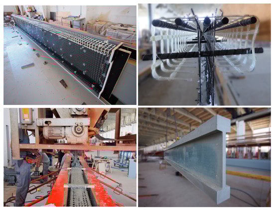 - Schmidt, M.; Bielak, J.; Hegger, J. Large-Scale Tests on the Structural and Deformation Behaviour of I-Beams with Carbon Reinforcement. In Proceedings of the Fiber Reinforced Polymer Reinforced Concrete Structures 14, Belfast, UK, 4–7 June 2019. [Google Scholar]