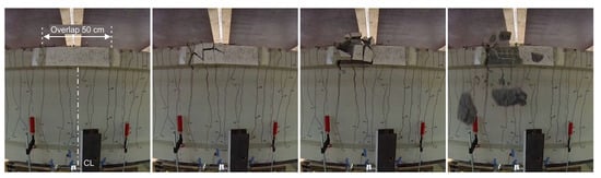 Failure sequence of FT03 in the overlap section in mid-span (Δt = 0.32 s).