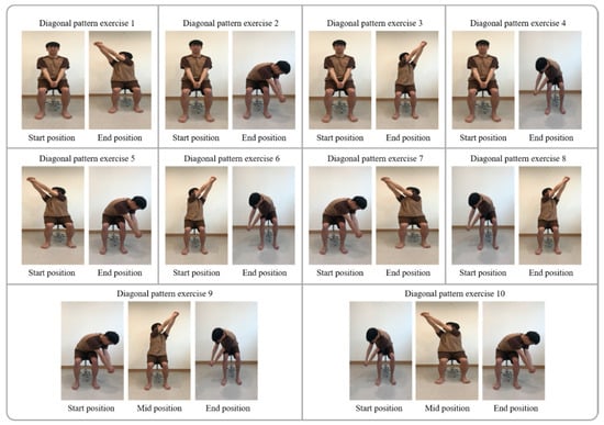 Diagonal pattern training has been conducted for trunk control rehabilitation in several studies for the selective movement of the spine and pelvis in stroke patients [13,14,15]. Diagonal pattern training is one of the trunk rehabilitation training methods that improve the movement, trunk asymmetry, flexibility, and strength provided by various planes [13]. It produces greater adaptive plasticity as the neural recruitment increases and dorsolateral prefrontal cortex and the primary motor cortex changes when compared to single plane movements [16]. Diagonal pattern movement can also rotate the trunk diagonally, separate the thorax and pelvis, and include repetitive weight movements to promote the facilitation of trunk muscles [13]. Although diagonal pattern training provides well-matched intervention in patients with trunk disability by stroke, the effect of trunk control ability for balance and gait relationship has not been verified yet.