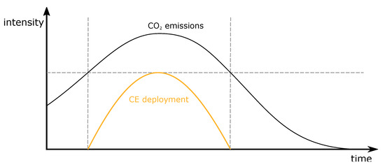 2 emissions also will decline toward zero. If so, SAI deployment might no longer be needed. The underlying assumption of the inevitable transition to a low-carbon society implies that CE deployment will be temporary only. BTA rests on the promise that there will be soon a time after SAI. For example, “Geoengineering might need to be implemented for only several decades” [