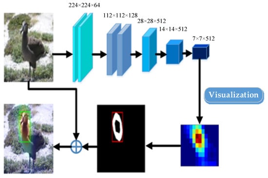 Fine-grained image classification is an important research topic in the field of computer vision, which aims to perform lower-level fine-grained classification upon higher-level coarse-grained categories. The main challenge of fine-grained classification is that the differences between different subcategories are usually subtle and local. In the related studies, it is usual to pre-process images for the extraction of image features, like color, texture, and contour. Then, the extracted features are used for training different models. During the test process, the same pre-processing procedure is applied to the testing images for the extraction of features, and these features are fed into the trained model to achieve classification results. Therefore, in the early stage, the bag-of-words method was first proposed []. Traditional artificial features are fed into the model to extract the corresponding feature vectors and obtain the final classification results. Wah et al. introduced the CUB200-2011 dataset [] and proposed some benchmark methods. However, their classification method for uncropped images only achieved an accuracy of 10.3%. Their model was used to first locate regional areas, then apply the bag-of-words method for encoding two different kinds of feature, RGB histogram features, and scale invariant feature transform (SIFT) features []. The encoded features would be fed into a support vector machine (SVM) classifier for image classification training. Such low accuracy is not satisfying. This method is limited due to the regional area localization method they used being not accurate enough; also, the artificially designed features cannot distinguish enough. Hence, many researchers have proposed new feature descriptors based on their research, like part-based one-vs-one features (POOF) [], Fisher-encoded SIFT [], supervised kernel descriptors for visual recognition (KEDS) [], etc. These methods, on fine-grained image classification, can reach an accuracy from 50% up to 62% [,].