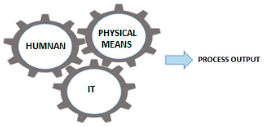 - Physical means resources are tangible items used in a process to carry out its activities. These include a wide range of specific goods and objects depending on the nature of the business, such as machines, robots, or any other physical device. The choice of their efficiency metrics depends on the type of business and on the goal to reach. Generally, the efficiency of physical resources is measured by performance, availability, reliability, etc. [29].