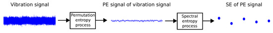 - The raw vibration signal is used for the PE process. As a result, the PE signal is obtained from the PE process.