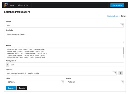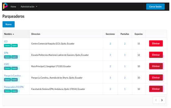 On the other hand, the main features created for system administrators includes: user management (add, update, delete), parking lot management (add, update, delete) including features related with parking sections, screens, RFID cards, parking levels, etc. (see Figure 9 and Figure 10).