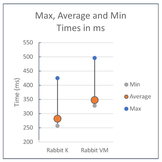Rabbit MQ Kubernetes vs. VM summarized times.
