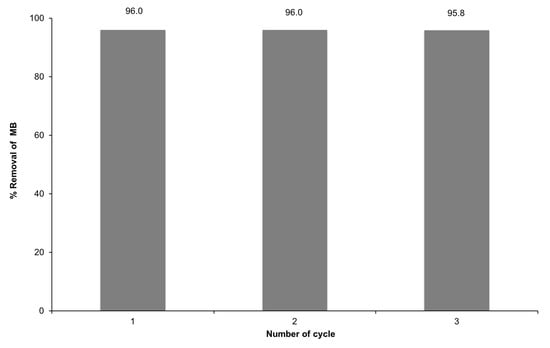 Removal efficiency of PEGCD1 for MB during three consecutive adsorption/desorption cycles.