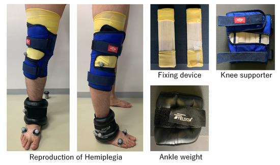 The reproduction of the hemiplegia by restricted the knee joint motion and a load of 3 kg on the ankle joint.
