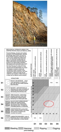 - Tsiambaos, G.; Saroglou, H. Excavatability assessment of rock masses using the Geological Strength Index (GSI). Bull. Eng. Geol. Environ. 2010, 69, 13–27. [Google Scholar] [CrossRef]