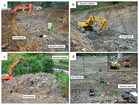 The seismic stations not seen in Figure 3 were placed between 30 and 40 m far from the operation in the direction of the historical site. All measurements were done while the equipment was performing the operations.