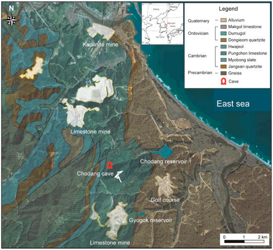 - Woo, K.S.; Won, J.K.; Lee, G.C.; Namkoong, C.; Choi, Y.K. Comprehensive Investigation Report of Chodang Cave; Samcheok City Hall: Samcheok, Korea, 2000; p. 202. [Google Scholar]
