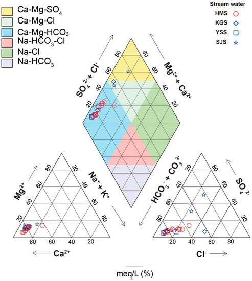 - Ryu, H.-S.; Lee, J.-Y.; Lim, C.-W.; Kim, K. Hydrochemical characteristics of groundwater and stream water in a karst area of Samcheok, Korea. J. Geol. Soc. Korea 2019, 55, 117–129. [Google Scholar] [CrossRef]