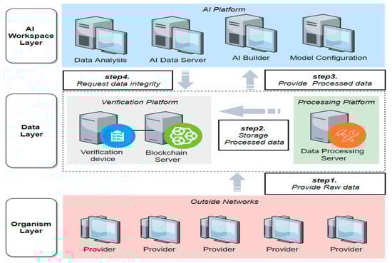 In particular, raw data need manual processing and inspection to secure data quality for sophisticated AI learning; therefore, human errors are inevitable. Damaged and incomplete data, as well as differences from raw data, may lead to unexpected outputs when the AI learns the processed data. In other words, in the course of establishing an AI model, the processed learning data need to be monitored to verify the AI’s different outputs, and at this time, the integrity of the raw data should be guaranteed [,,,].
