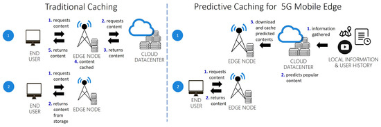 Figure 6 shows the main steps for the predictive caching using ML in mobile edge computing compared with the traditional procedure.