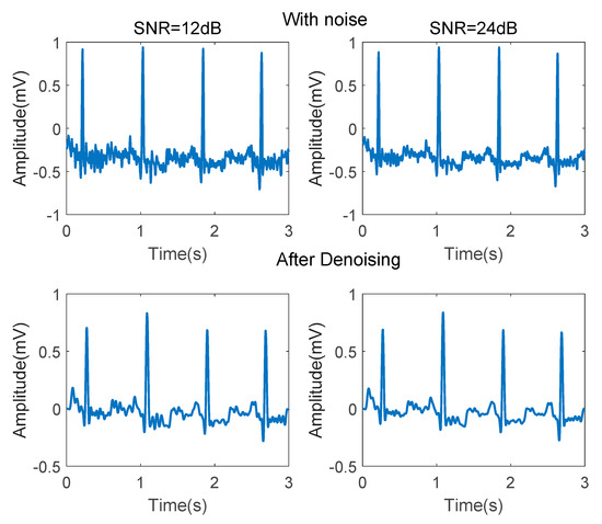 - Wang, L.; Sun, W.; Chen, Y.; Li, P.; Zhao, L. Wavelet transform based ECG denoising using adaptive thresholding. In Proceedings of the 7th International Conference on Bioinformatics and Biomedical Science (ICBBS), Shenzhen, China, 23–25 June 2018; pp. 35–40. [Google Scholar]