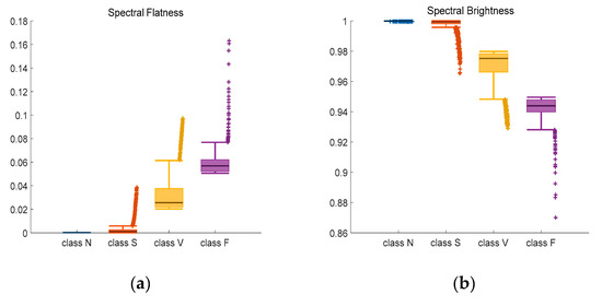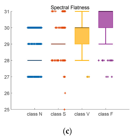 Finding the decisive features of the signals is a crucial step in the procedure. In the following subsections, spectral features are explained in detail. They are extracted from the spectral modes obtained using the bispectrum and 2D-GFT. Different spectral features, including spectral flatness, spectral brightness and spectral roll-off, were extracted from divided single heart beat [25].